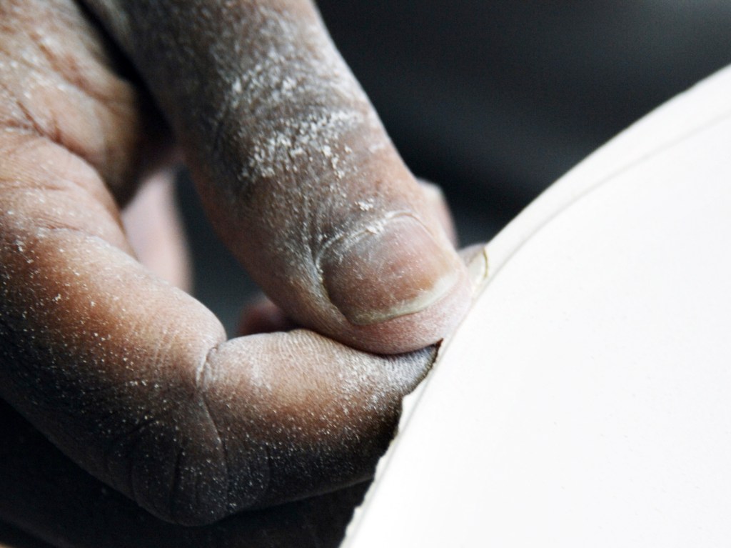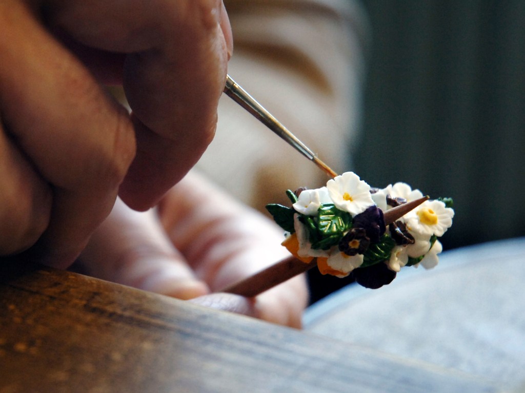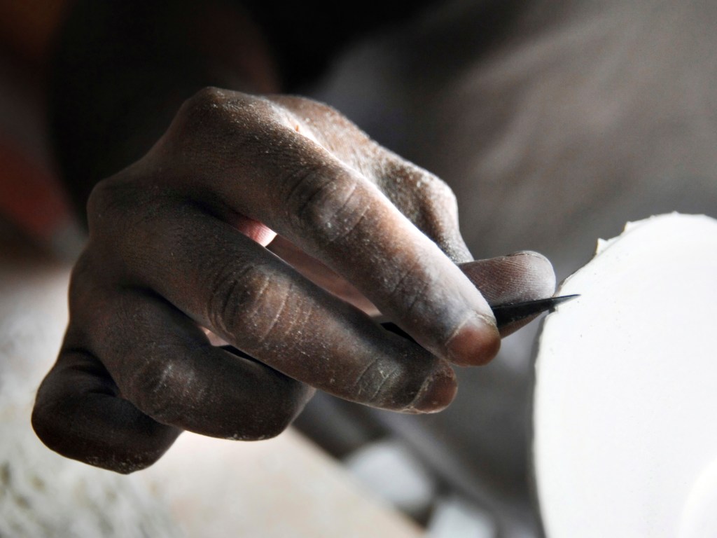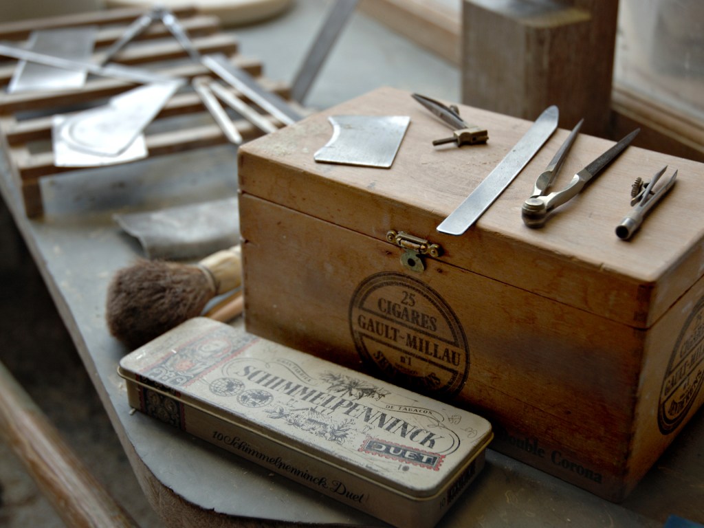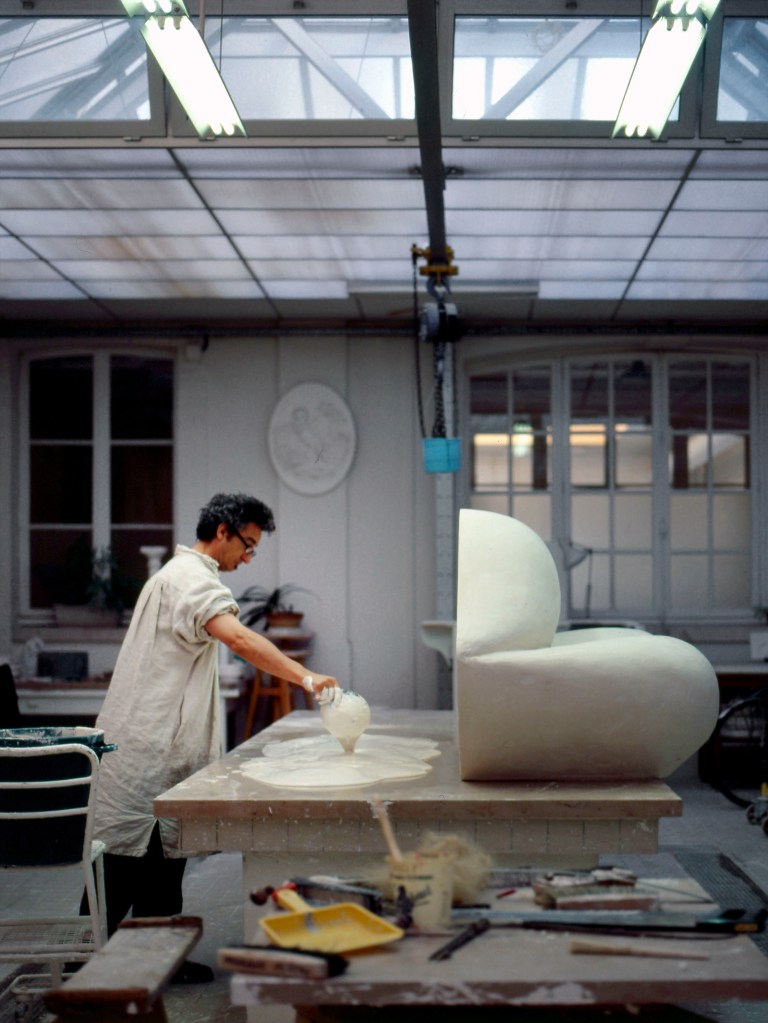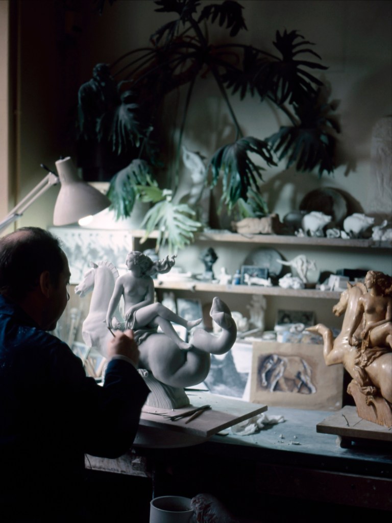 Des bâtiments de pierre, de brique et de verre, sont posés là. De calmes patios fleuris les séparent. Des tas de cailloux, des galeries de choses qui ressemblent à des fromages. Non! Ce sont des moules en plâtre, gardés comme un trésor dans cet endroit appelé le magot. De l’eau ruisselle. Le feulement d’un tour de potier. L’odeur de la terre blanche qui glisse mollement sur le sol. Des ombres dansent au fil d’allées claires ou obscures. D’un blanc immaculé surgissent, immobiles, des centaines de vases, de statues, d’assiettes, de tasses. Le souffle chaud du feu, l’odeur du bois. Une porte grince. Des couleurs explosent sans bruit. Le frémissement d’un pinceau. Les couleurs sentent bon. La pièce se joue sans relâche depuis deux siècles et demi. Les acteurs, ce sont ceux qui transforment les cailloux en or. L’alchimie est parfaite. Les gestes de Sèvres sont là, intacts, sans troubles.