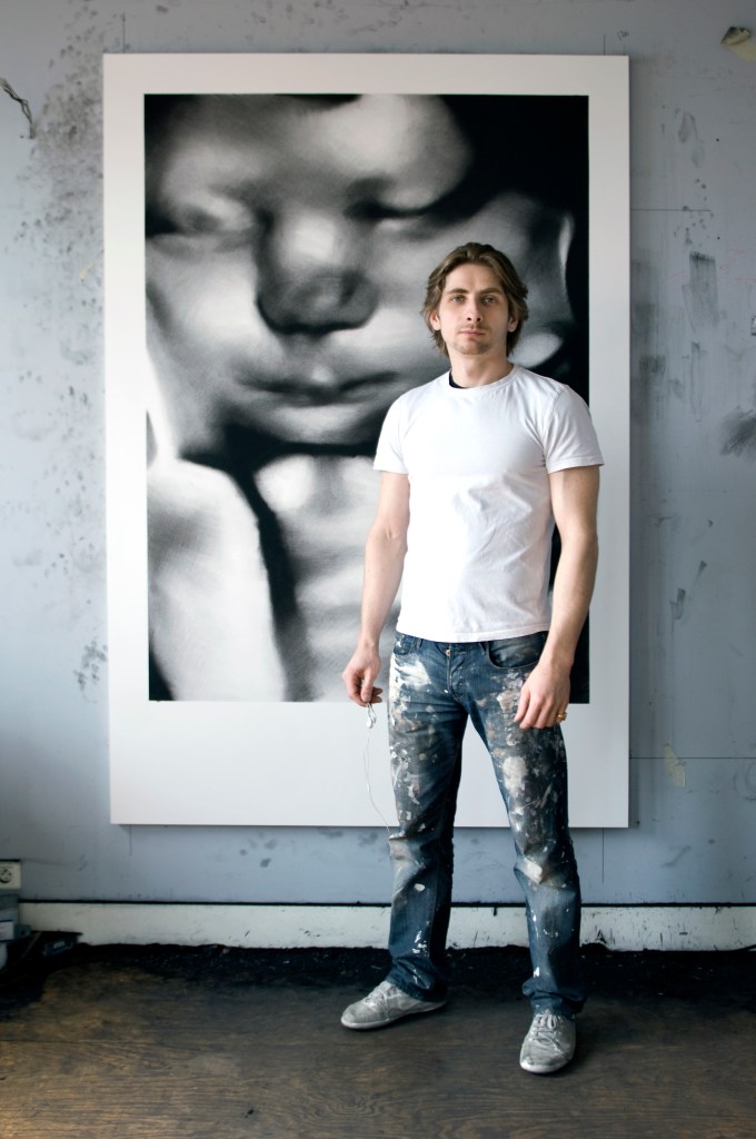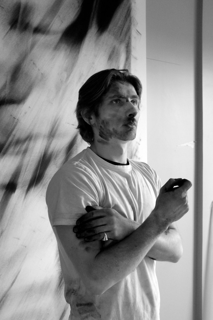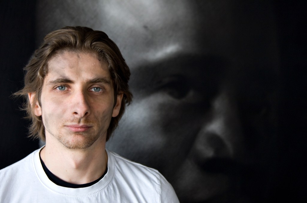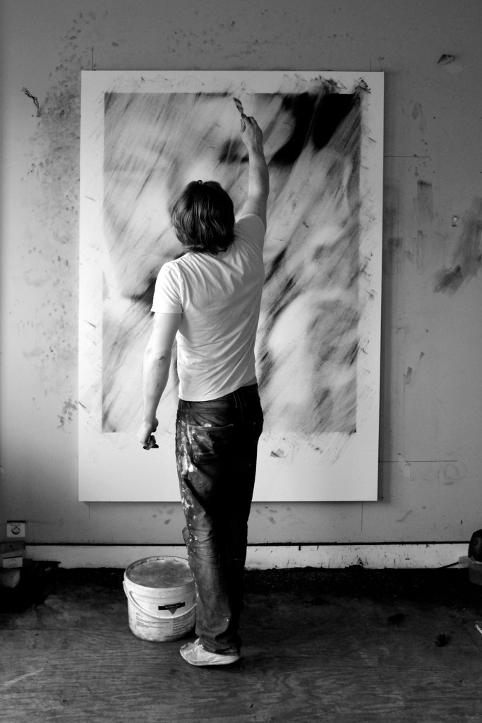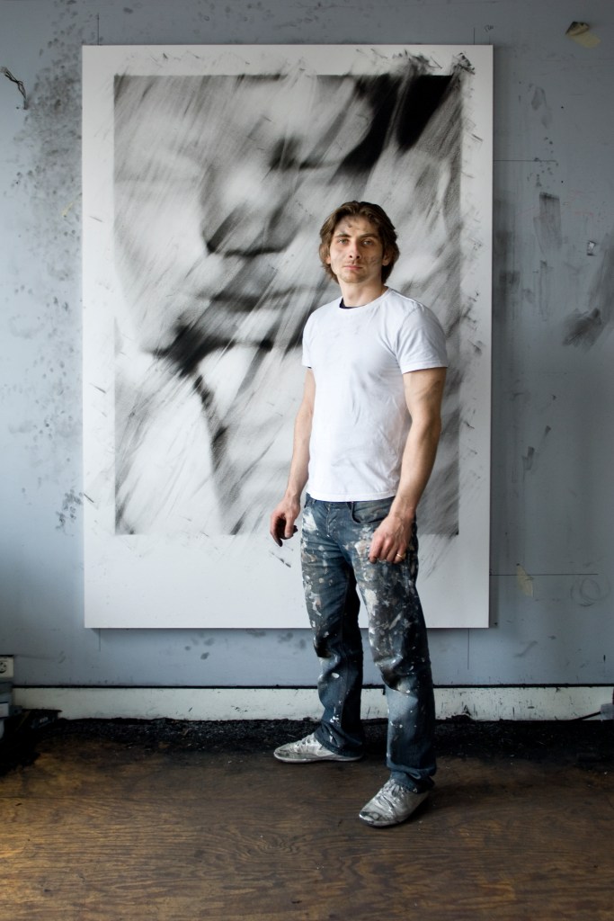 In a first step, to work from images of print media or internet, including sometimes images of his private sphere, big drawings represent mainly individuals on a black background. These drawings made with charcoal and black stone seem to lose any context in the image and its subject. The spectator who can’t anymore connect them with a precise event or with news which the image in its origin was supposed to represent.