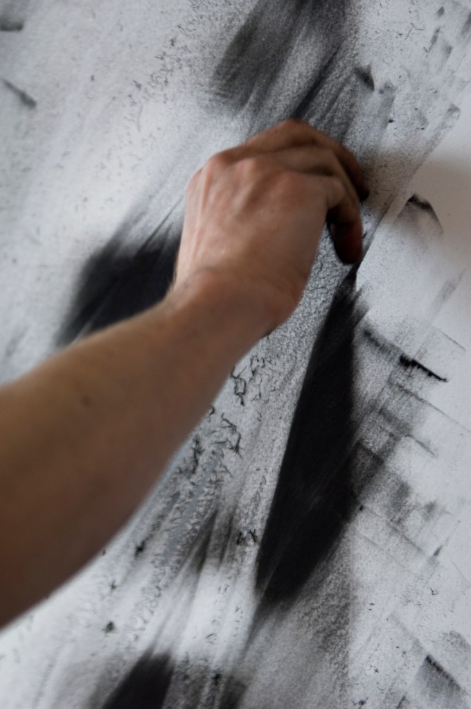 In a second step, these drawings are partially or totally erased. Destruction or continuity of process of the act of drawing, these erasing are both made in studio or during public interventions.
